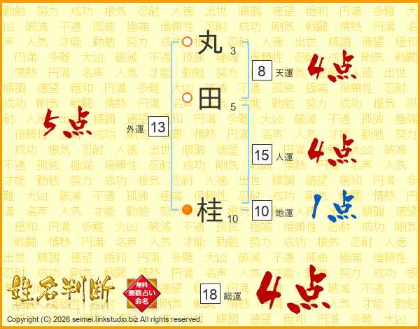 丸田桂さんの総運は18画の4点!