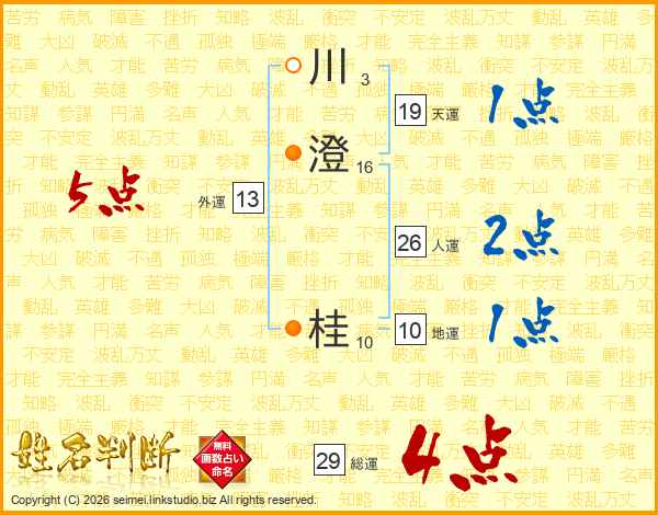 川(3画)澄(16画) 桂(10画)