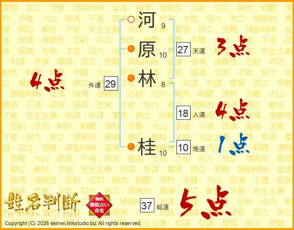 河原林桂さんの総運は37画の5点!