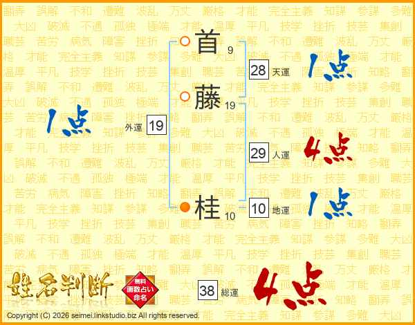 首(9画)藤(19画) 桂(10画)