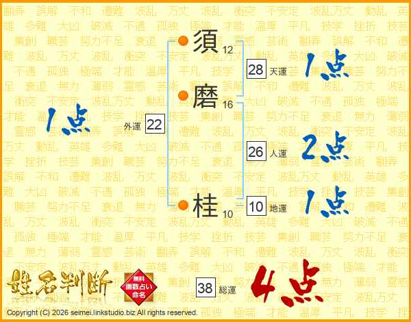 須磨桂さんの総運は38画の4点!