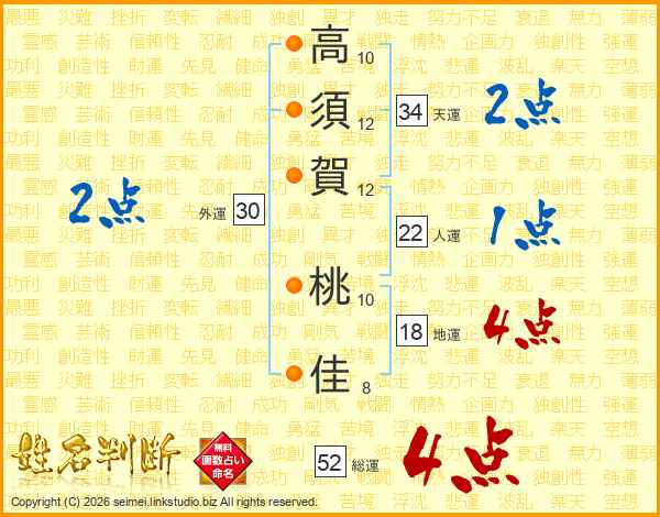 高須賀桃佳さんの総運は52画の4点!