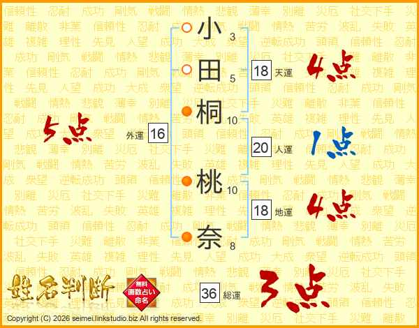 小田桐桃奈さんの総運は36画の3点!