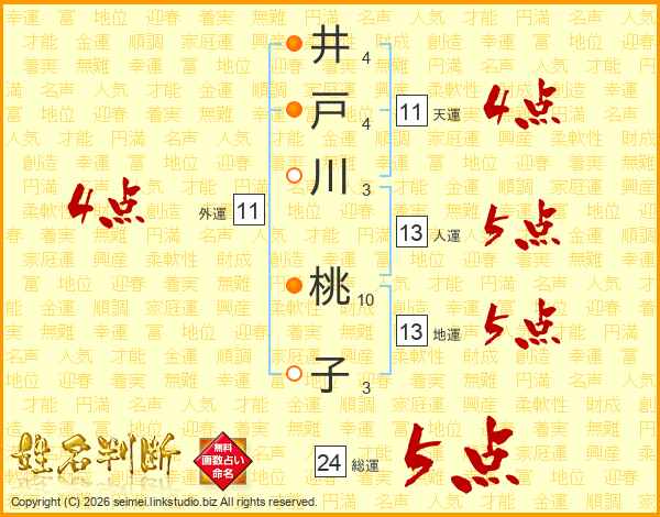 井戸川桃子さんの総運は24画の5点!