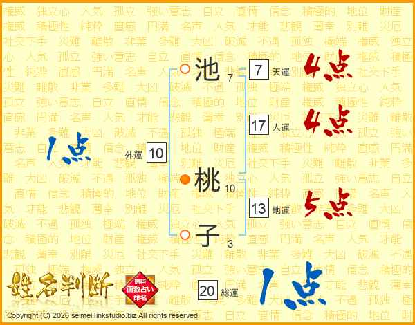 池桃子さんの総運は20画の1点