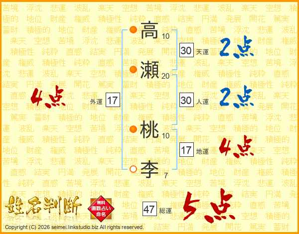 高瀬桃李さんの総運は47画の5点!
