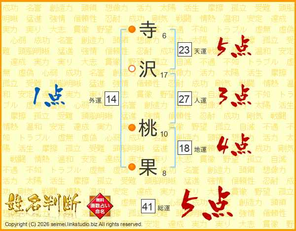 寺沢桃果さんの天運は23画の5点!