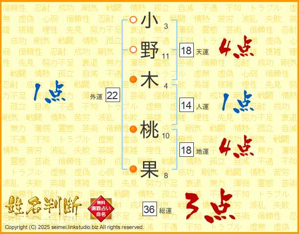 小(3画)野(11画)木(4画) 桃(10画)果(8画)
