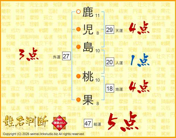 鹿児島桃果さんの総運は47画の5点!