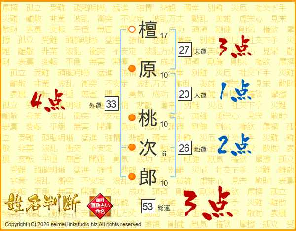 檀原桃次郎さんの総運は53画の3点!