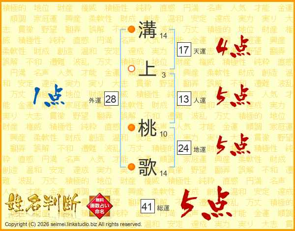 溝上桃歌さんの総運は41画の5点!