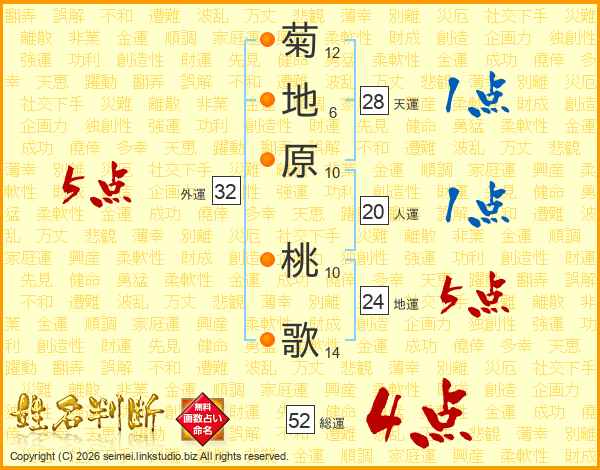 菊地原桃歌さんの総運は52画の4点!