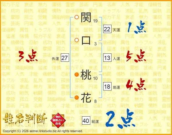 関口桃花さんの総運は40画の2点!