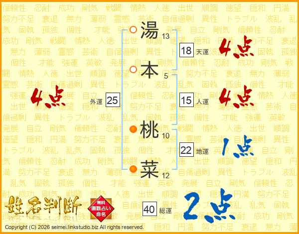 湯本桃菜さんの天運は18画の4点!
