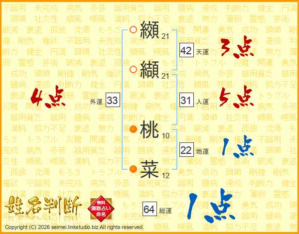 纐纈桃菜さんの総運は64画の1点!