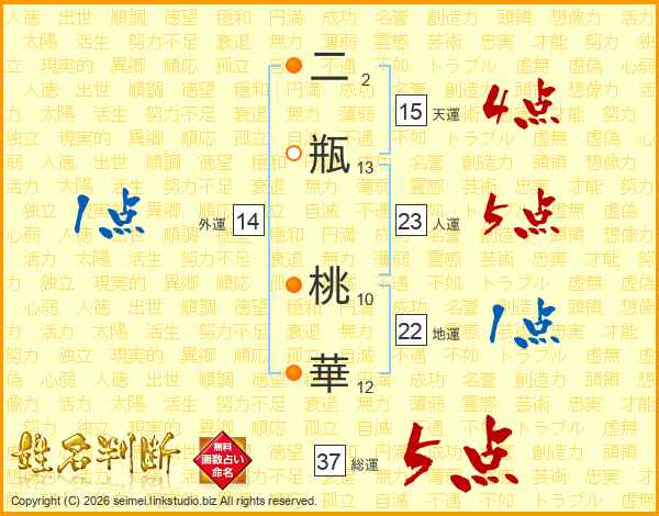 二瓶桃華さんの総運は37画の5点!