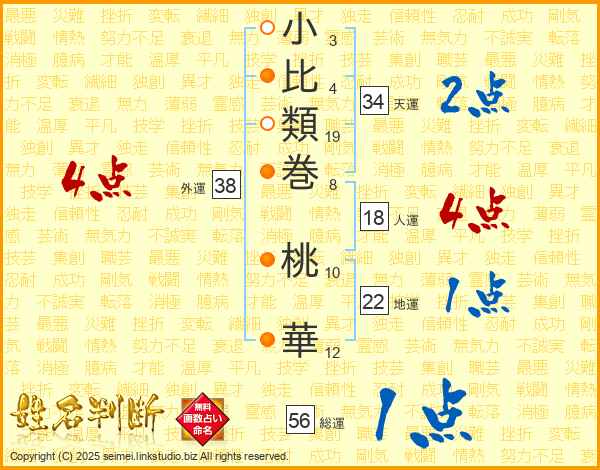 小(3画)比(4画)類(19画)巻(8画) 桃(10画)華(12画)