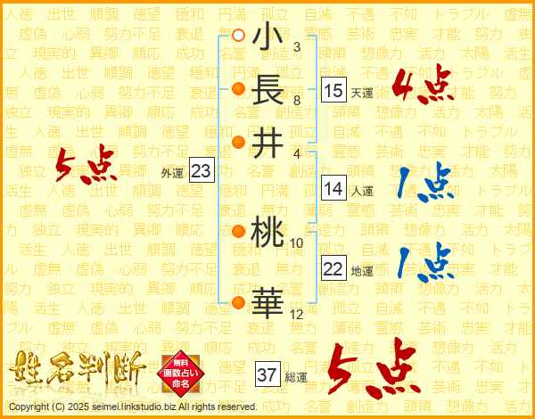 小(3画)長(8画)井(4画) 桃(10画)華(12画)