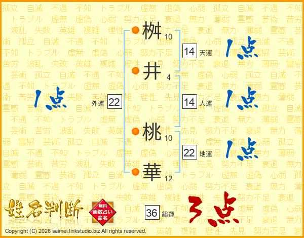 桝井桃華さんの天運は14画の1点!