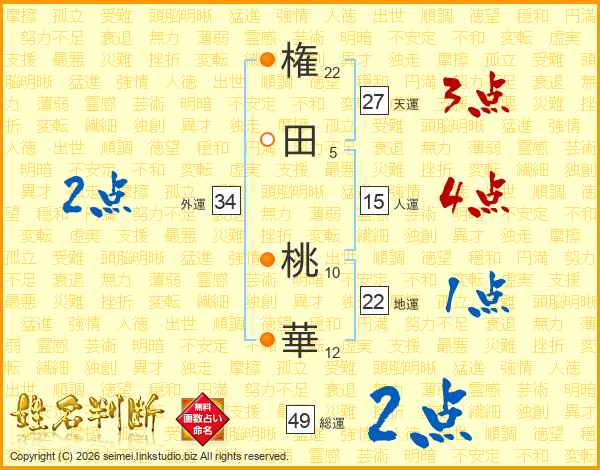 権田桃華さんの総運は49画の2点!