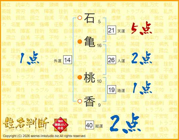 石亀桃香さんの天運は21画の5点!
