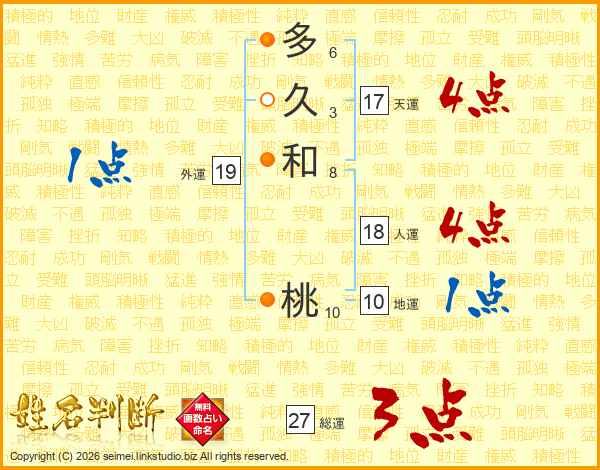 多久和桃さんの天運は17画の4点!