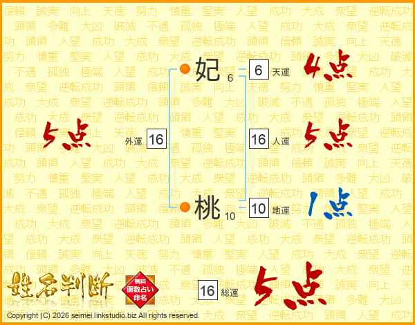 妃桃さんの総運は16画の5点!