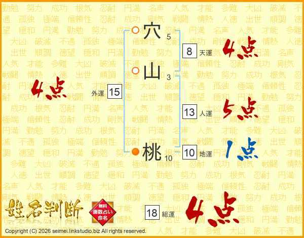 穴山桃さんの外運は15画の4点!