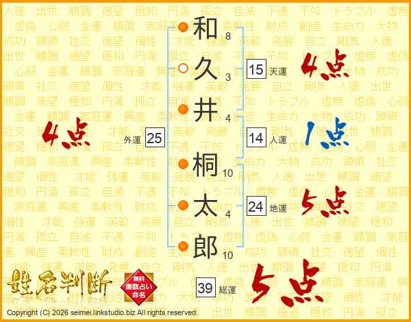 和久井桐太郎さんの総運は39画の5点!