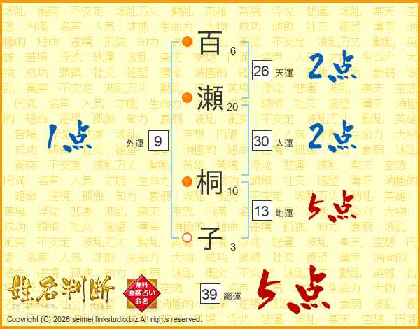 百瀬桐子さんの総運は39画の5点!