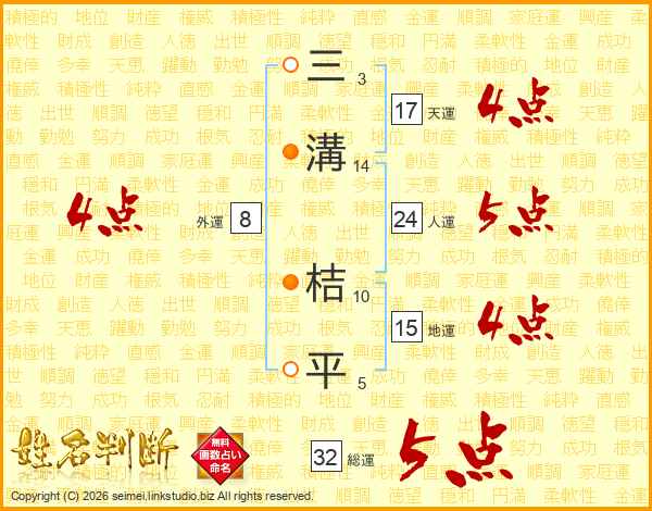 三溝桔平さんの総運は32画の5点!