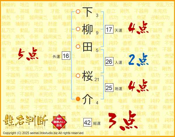下柳田桜介さんの地運は25画の4点!