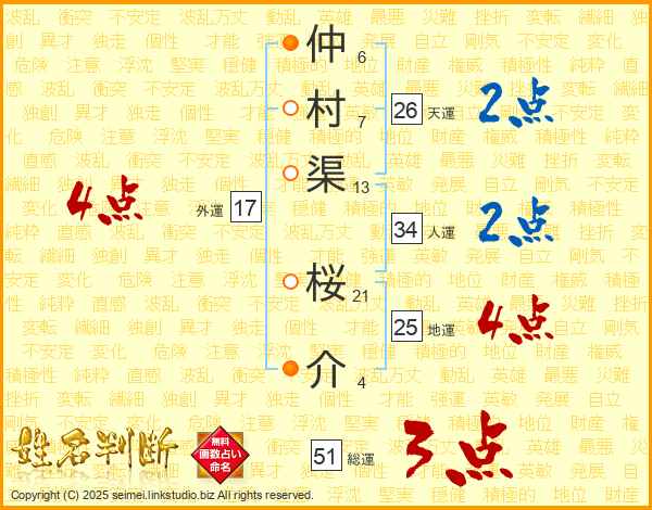 仲村渠桜介さんの地運は25画の4点!