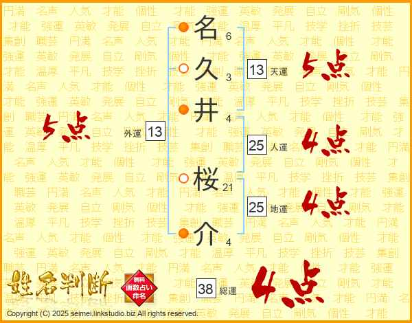 名(6画)久(3画)井(4画) 桜(21画)介(4画)