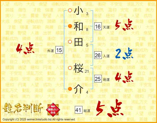 小和田桜介さんの地運は25画の4点!