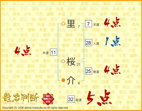 里桜介さんの地運は25画の4点!
