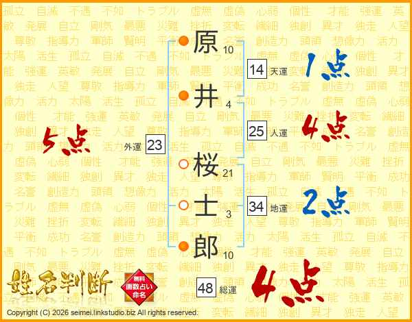 原井桜士郎さんの人運は25画の4点!