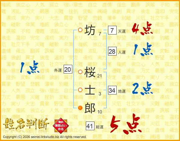 坊桜士郎さんの総運は41画の5点!
