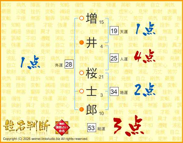 増(15画)井(4画) 桜(21画)士(3画)郎(10画)