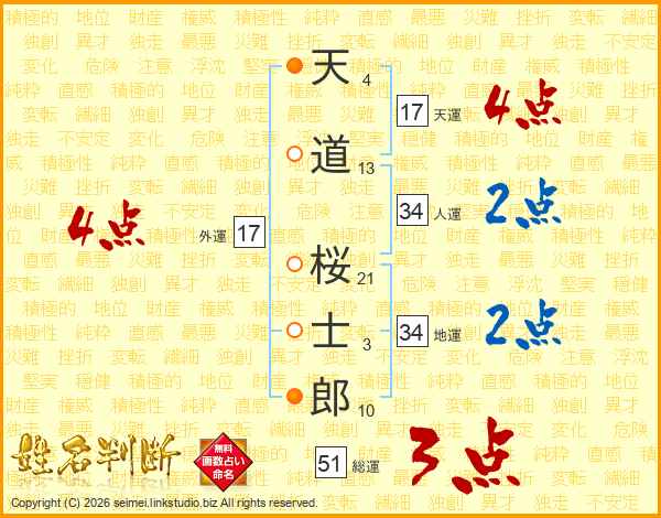 天道桜士郎さんの天運は17画の4点!