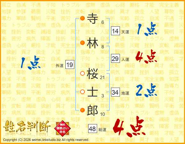 寺林桜士郎さんの人運は29画の4点!