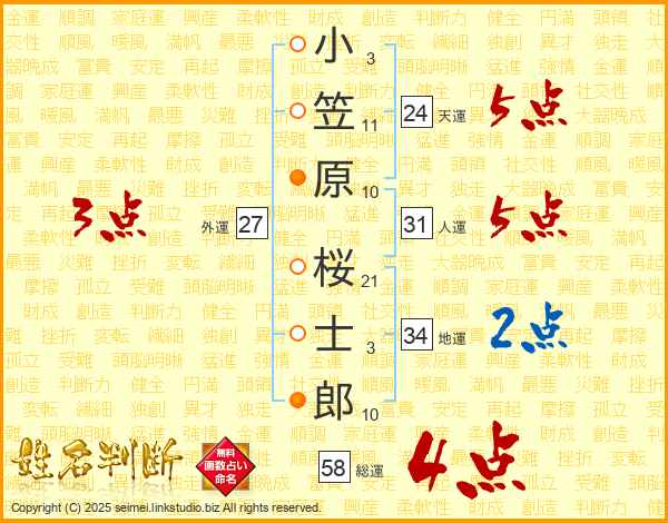 小(3画)笠(11画)原(10画) 桜(21画)士(3画)郎(10画)