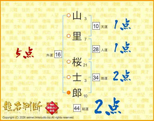 山里桜士郎さんの総運は44画の2点!