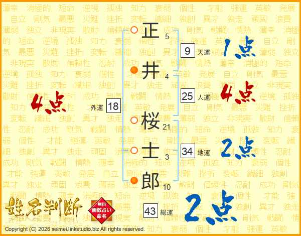 正井桜士郎さんの総運は43画の2点!