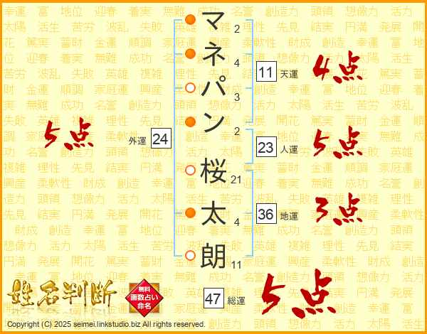 マネパン桜太朗さんの総運は47画の5点!