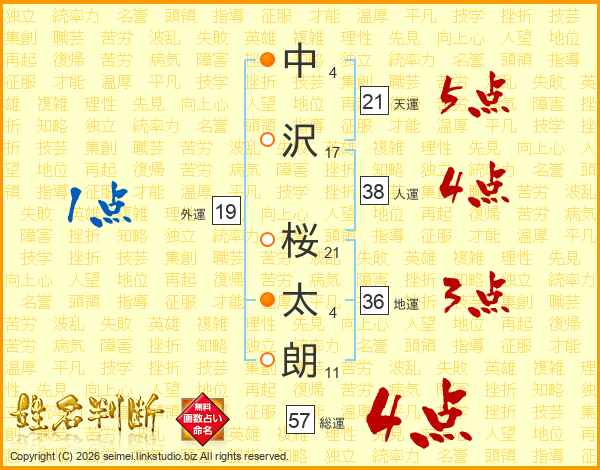 中沢桜太朗さんの天運は21画の5点!