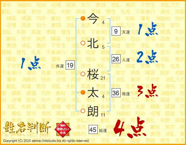 今北桜太朗さんの総運は45画の4点!