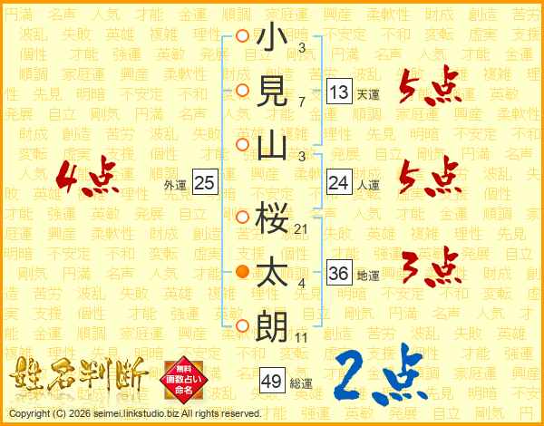 小見山桜太朗さんの総運は49画の2点!