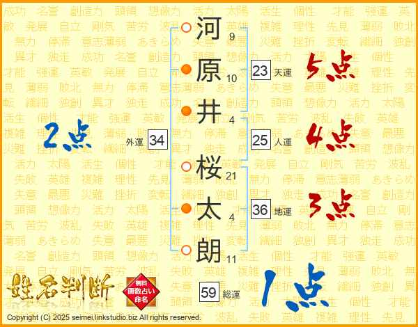 河原井桜太朗さんの天運は23画の5点!