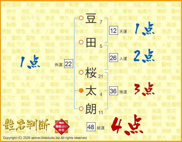 豆田桜太朗さんの総運は48画の4点!